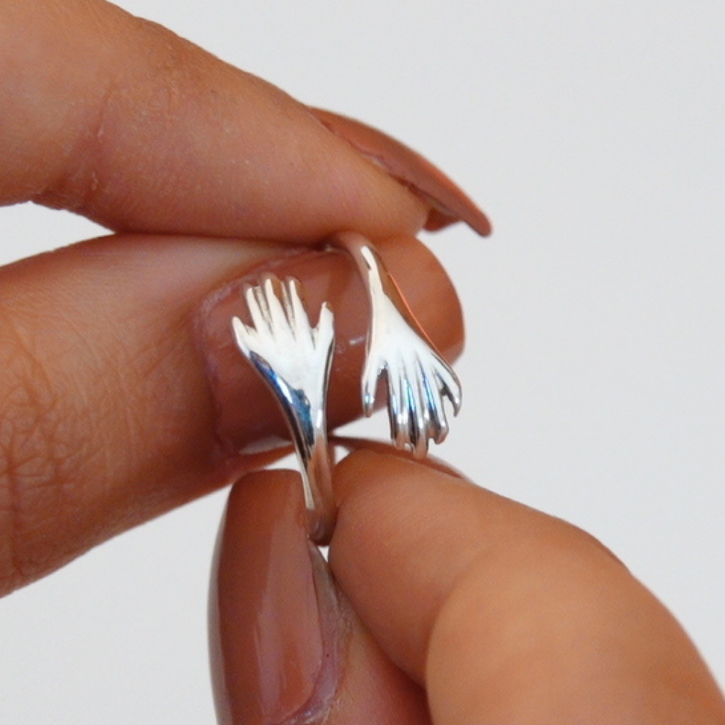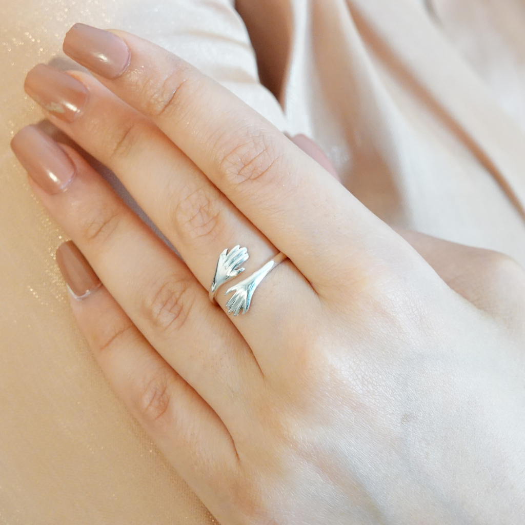 We turned that hug into a simple hugging hand shape ring wrapping around your finger, to hold that deep impression.