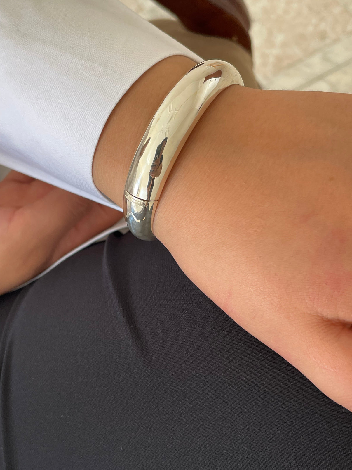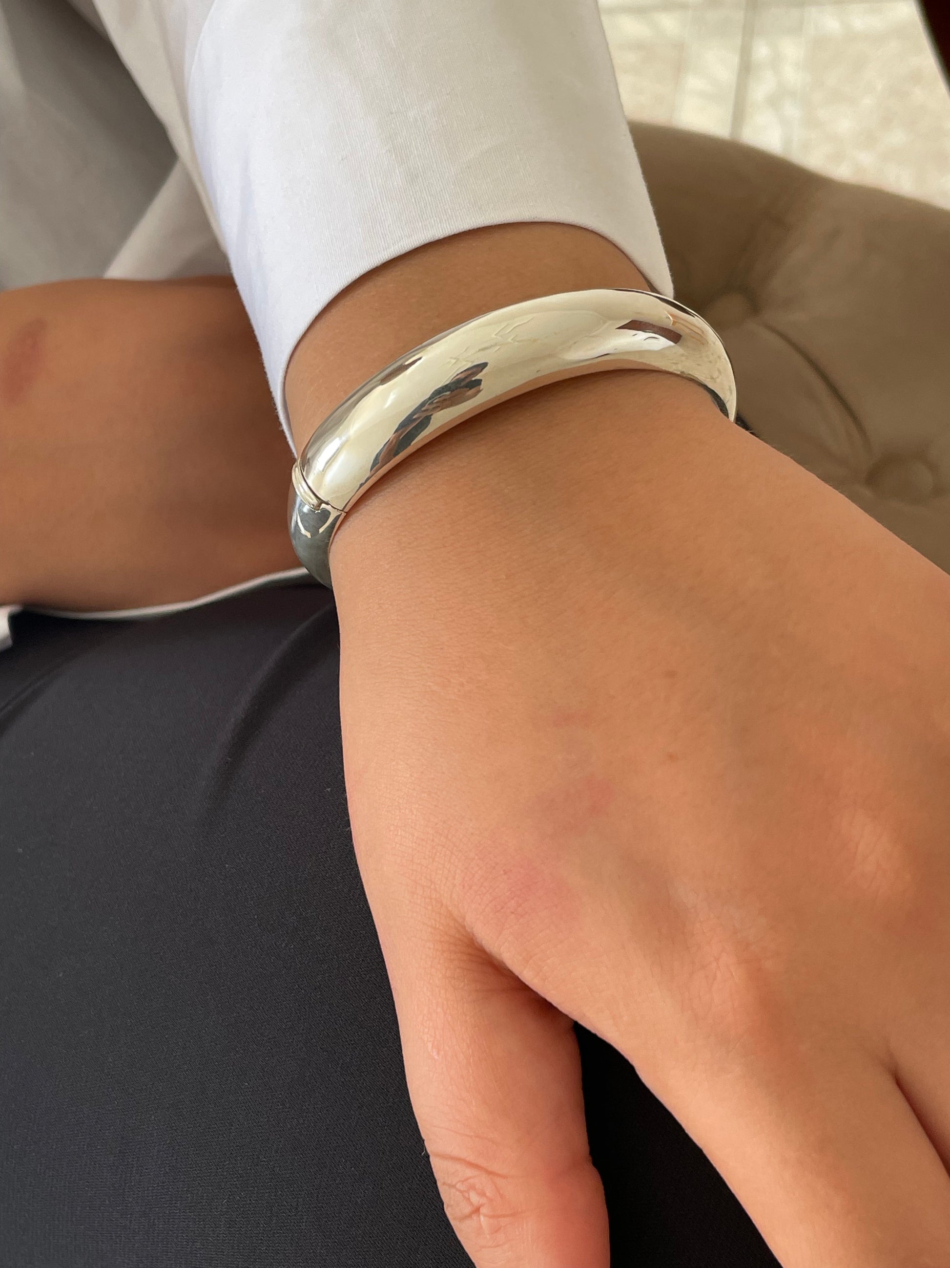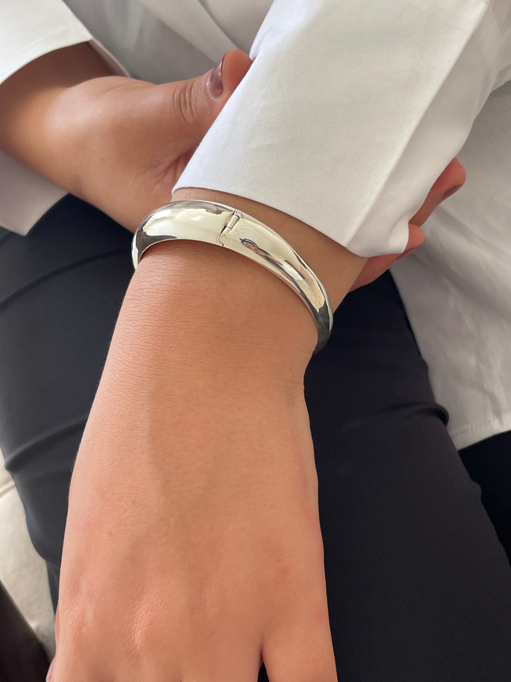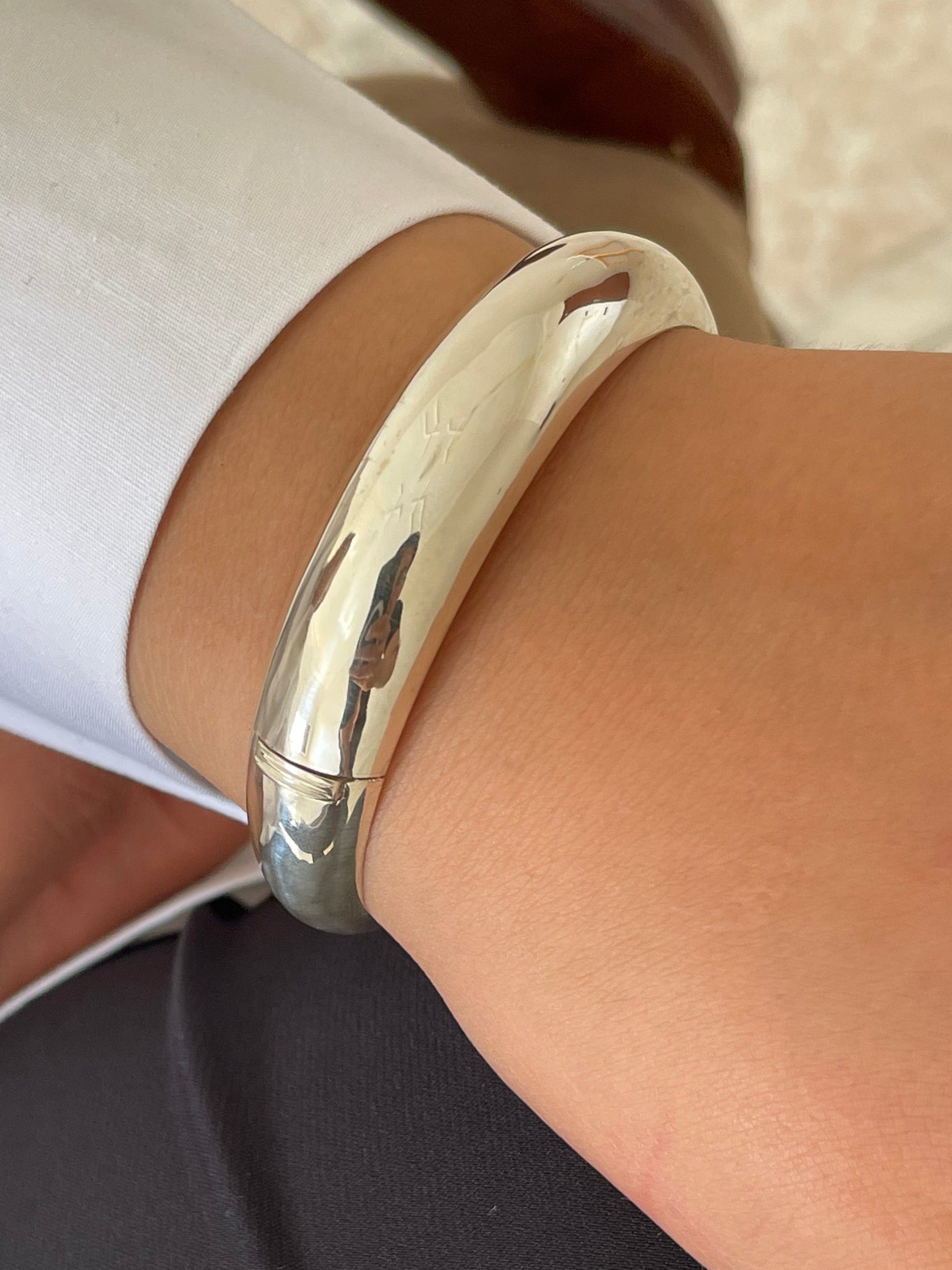 Heavy Sterling Silver Wide Hinged Chunky Bangle Bracelet