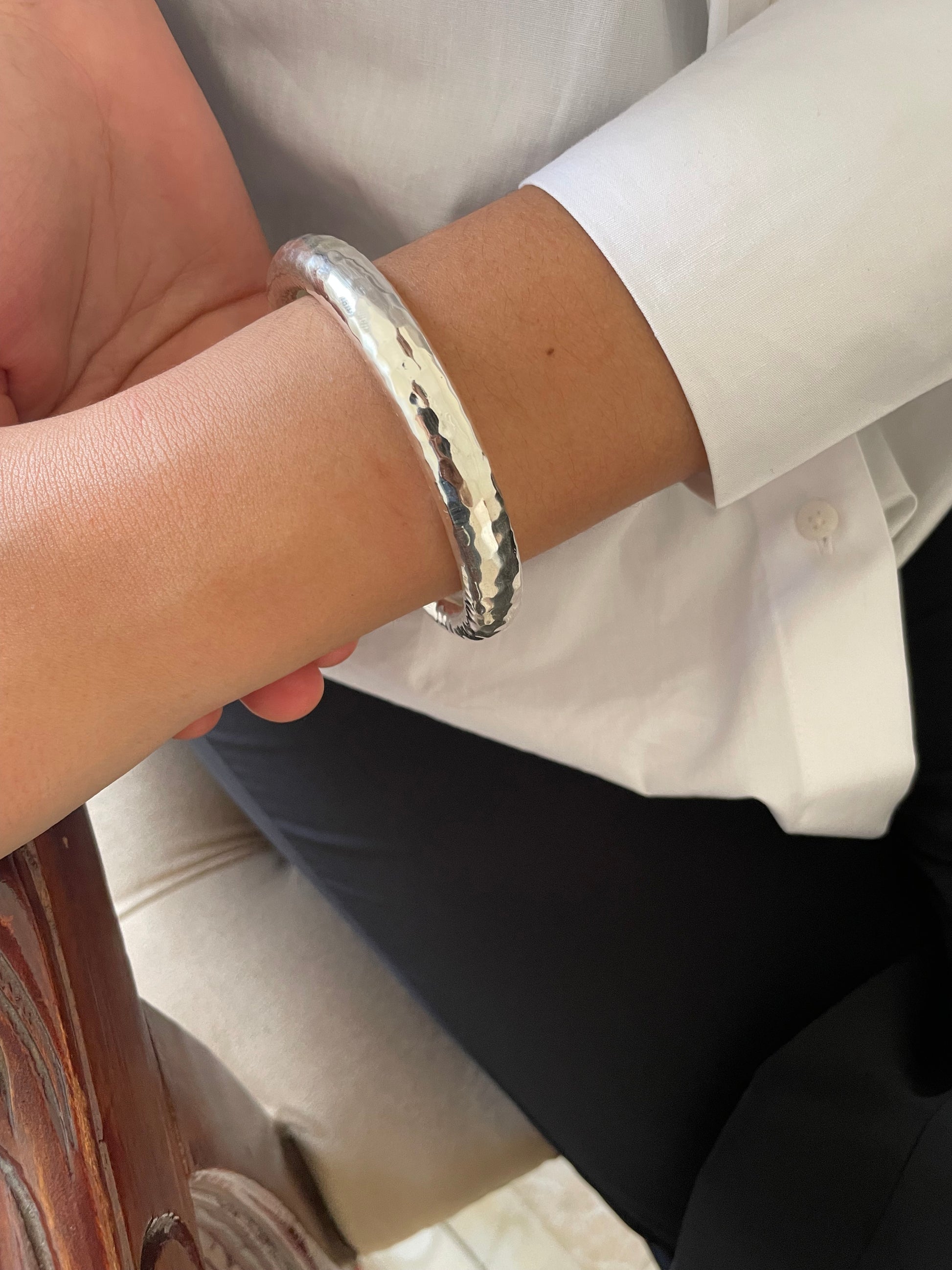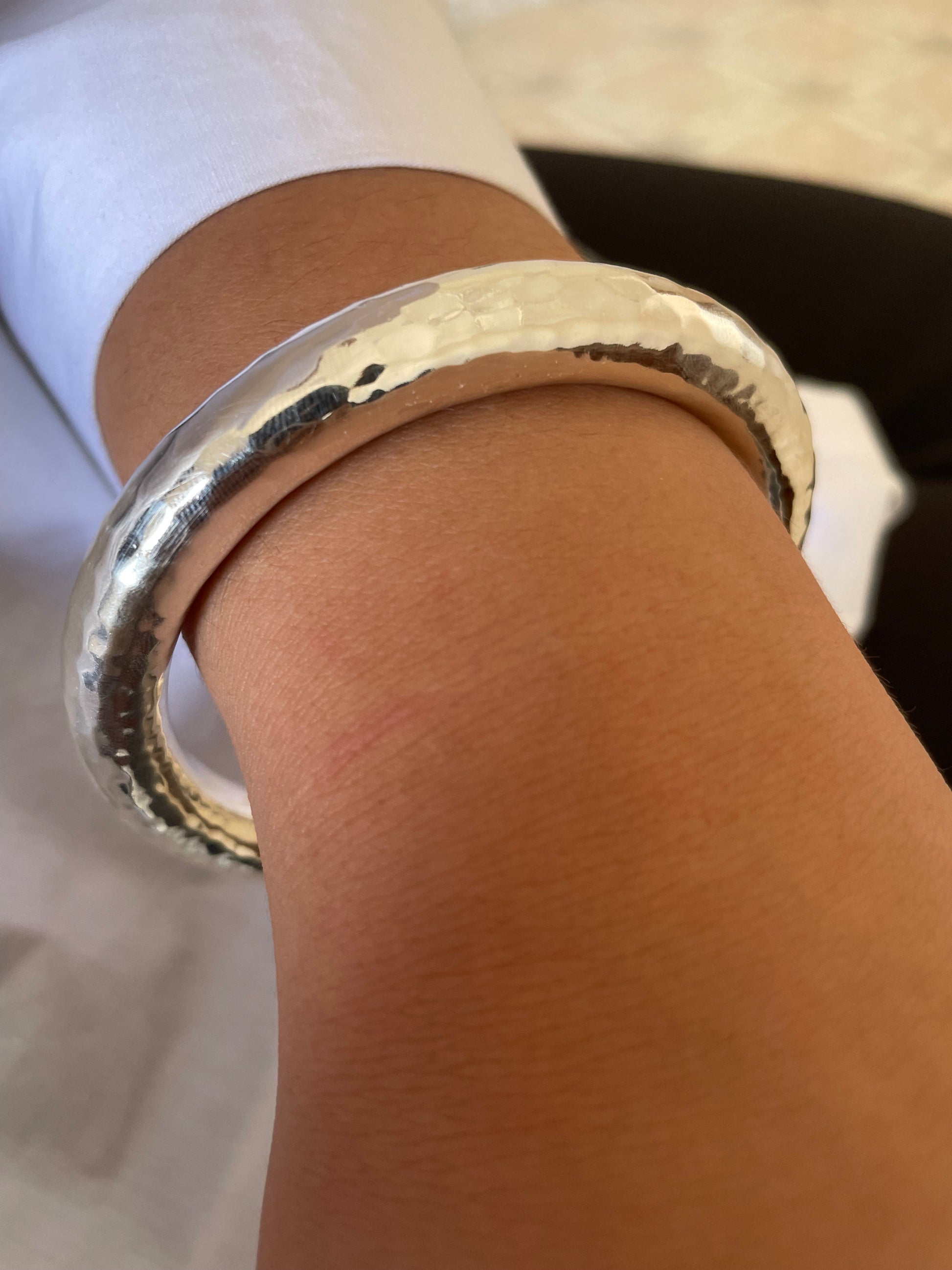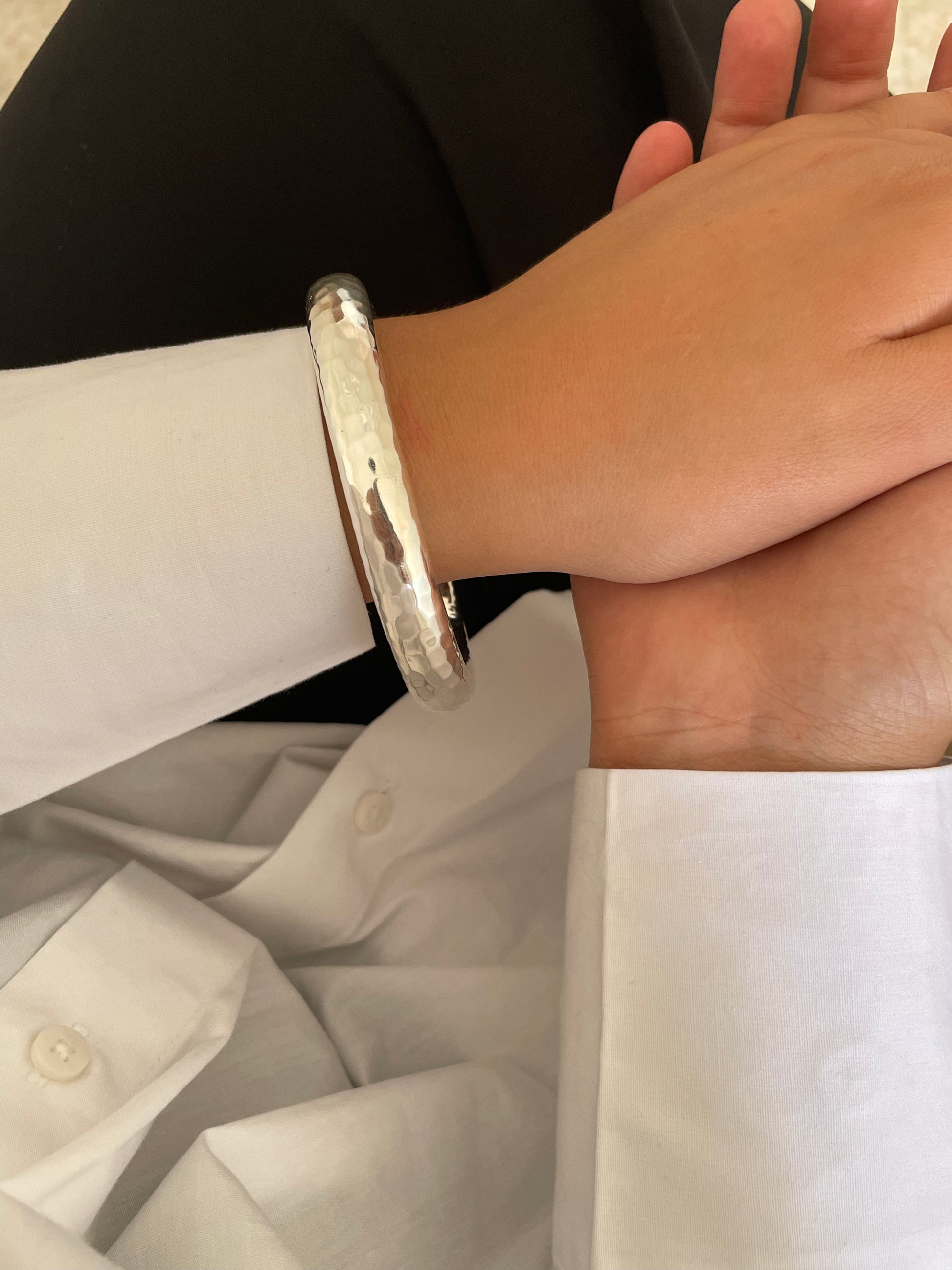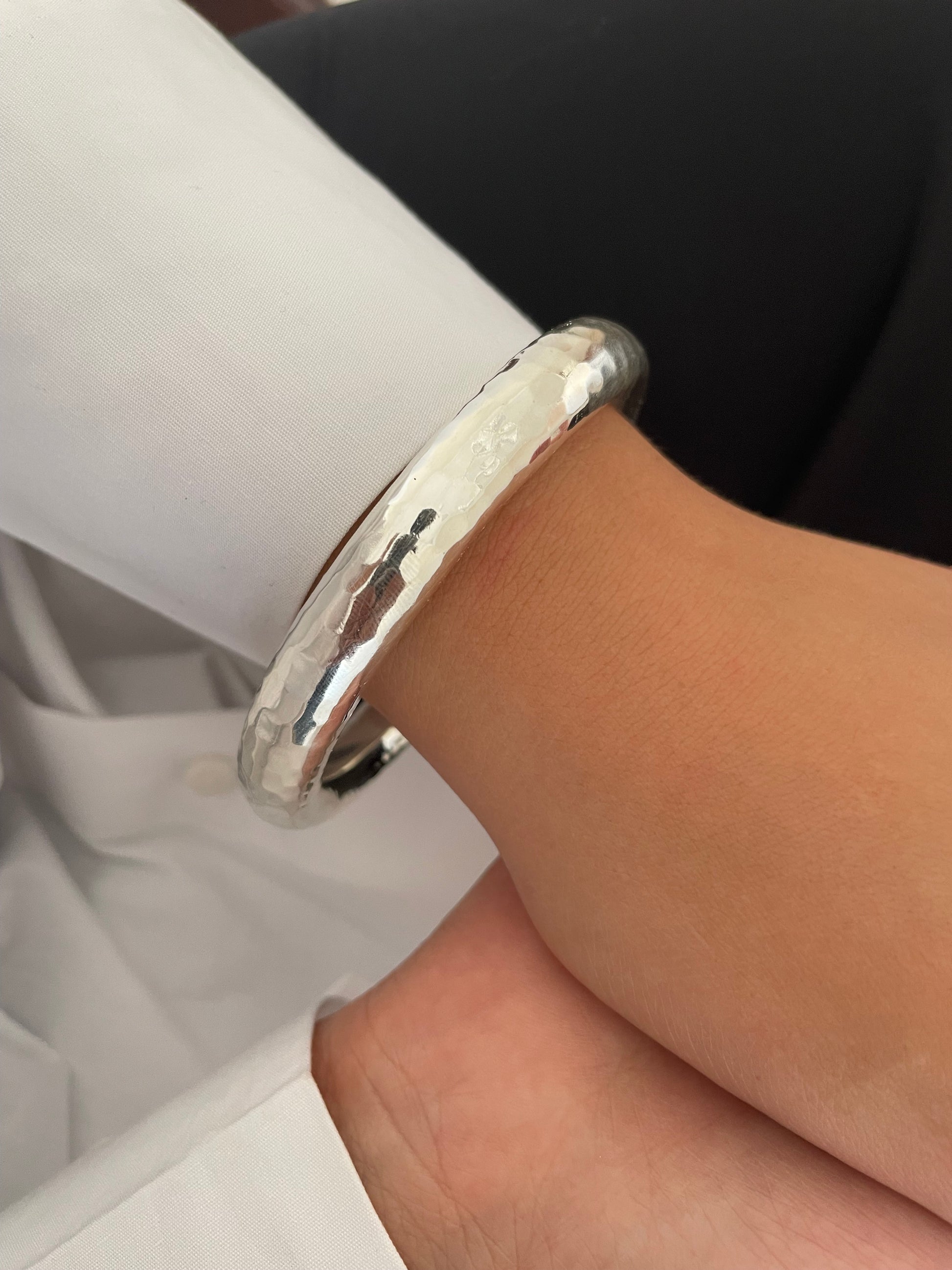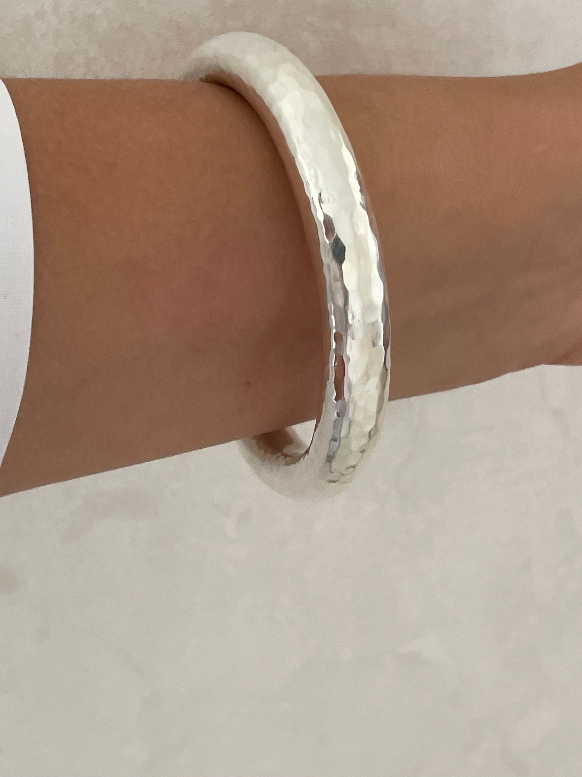 Discover the timeless elegance of our Silver Sterling Bangles, available in two stunning finishes: hammered and smooth.