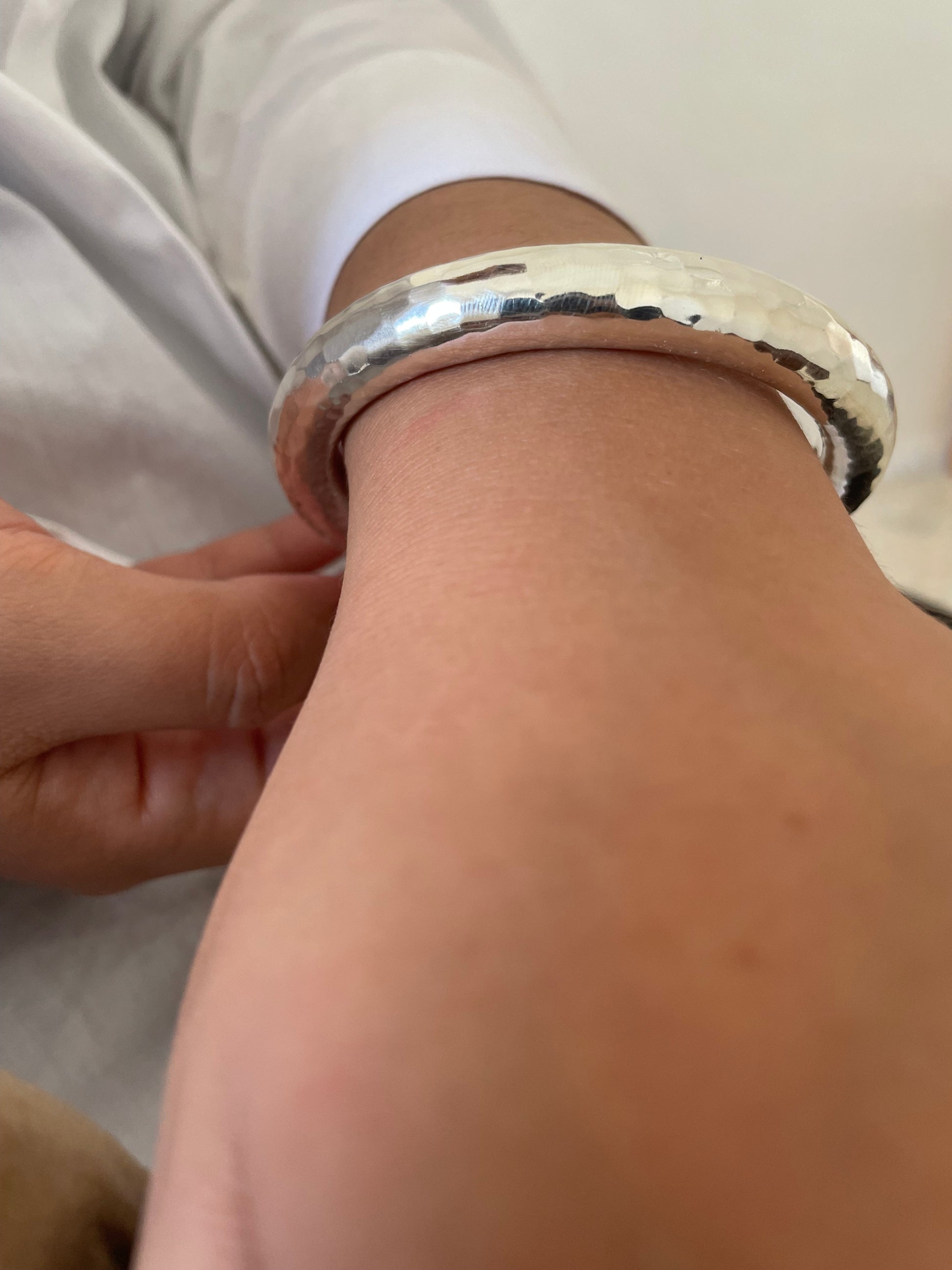 Silver Sterling Bangles: Hammered Texture and Smooth Finish