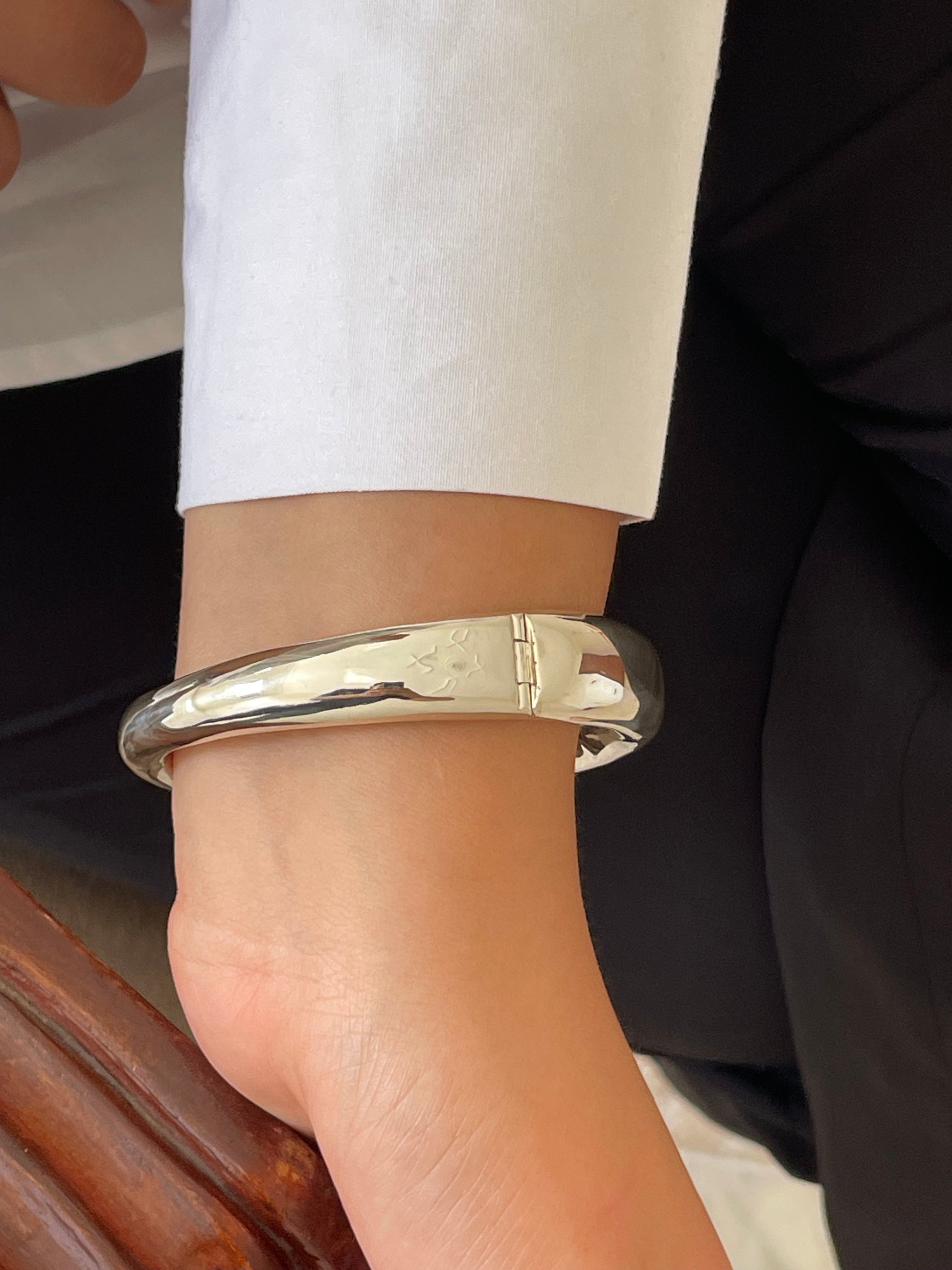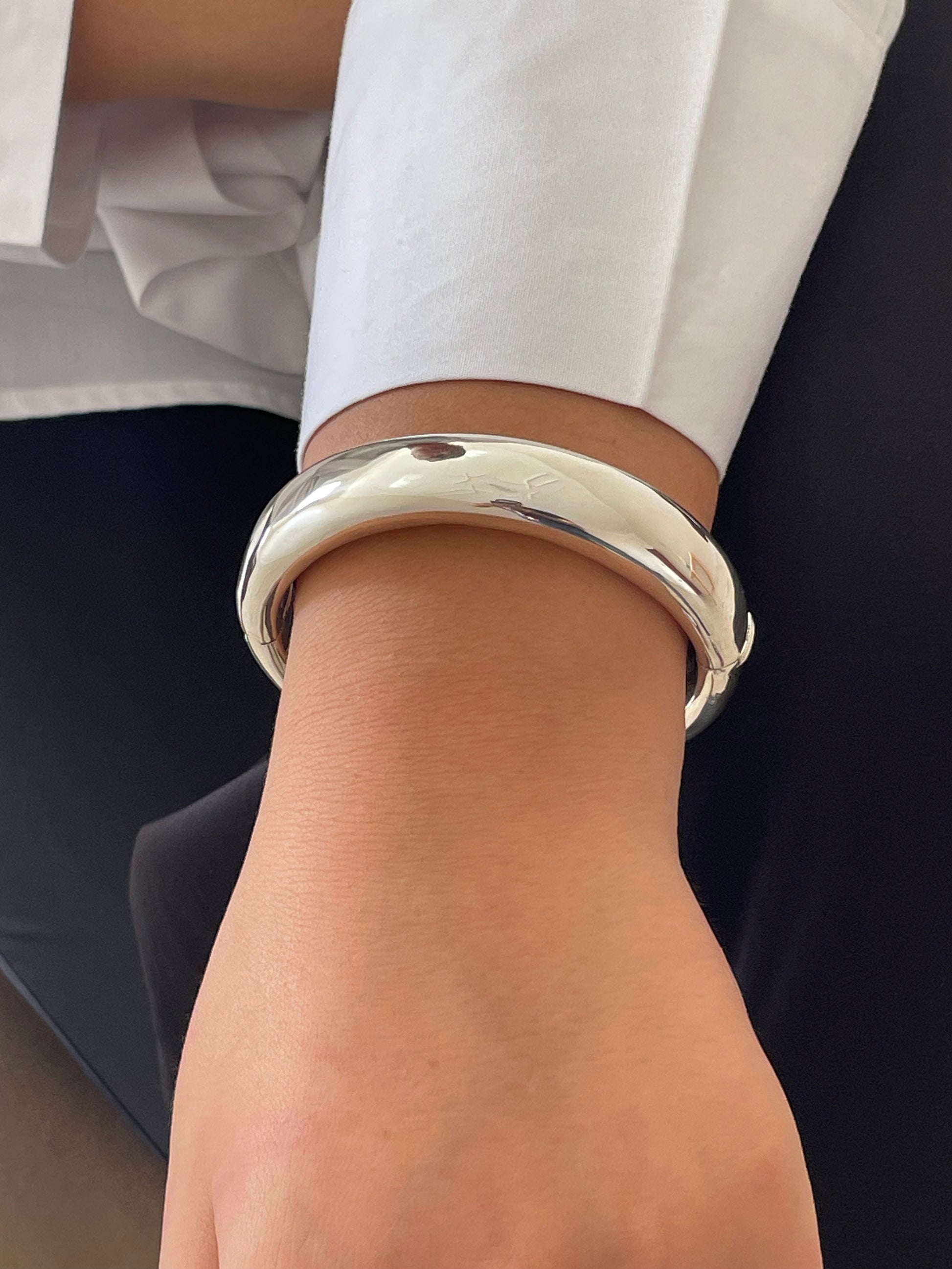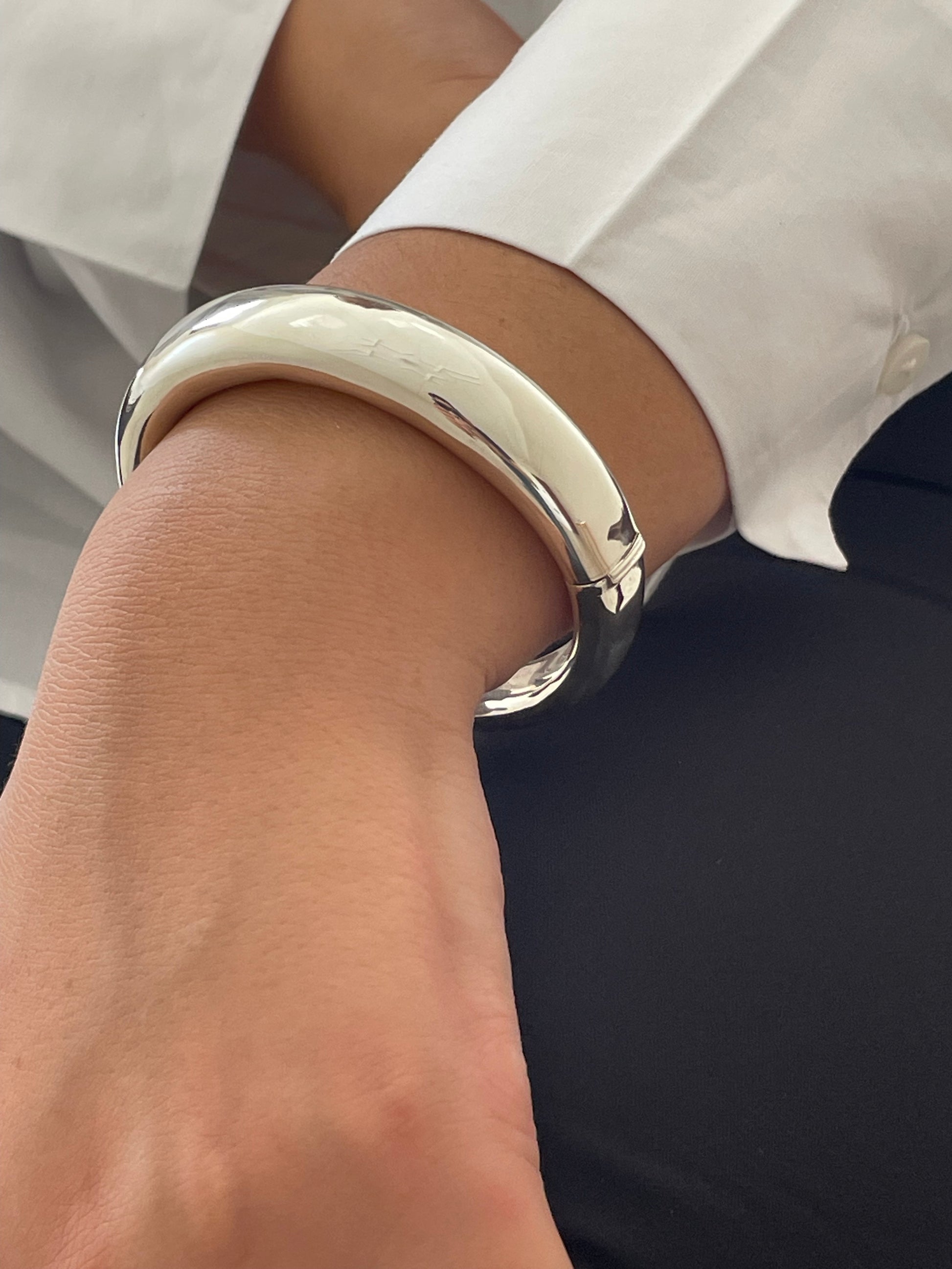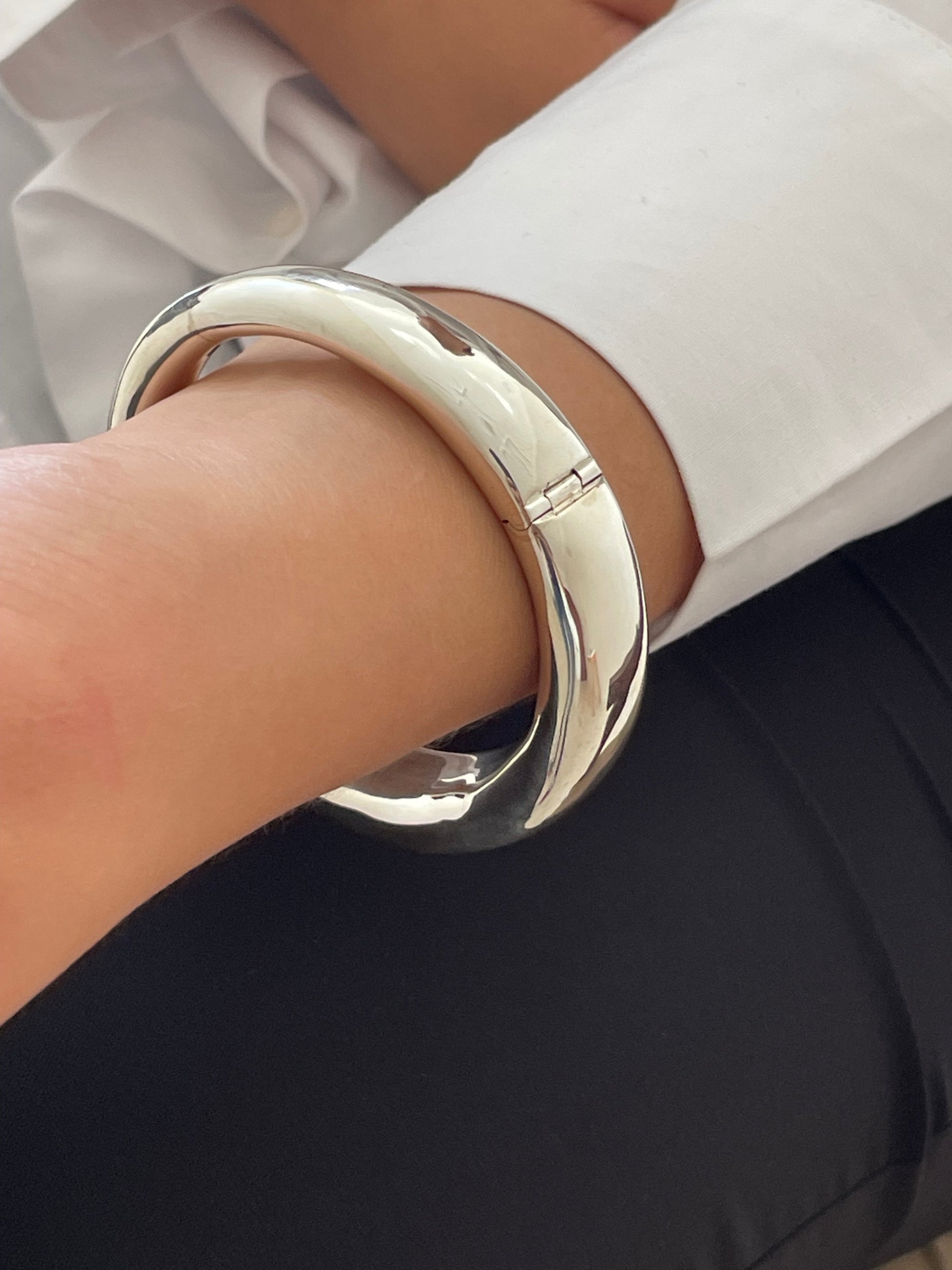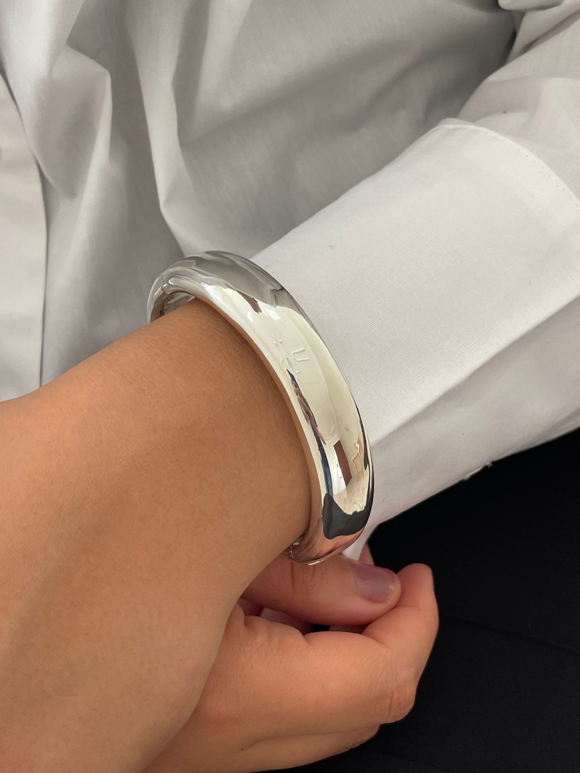 Made from high-quality sterling silver, this bangle is lightweight yet durable, making it ideal for everyday wear or special occasions. The simple yet modern design allows it to complement any outfit, whether you're dressing up or keeping it casual.