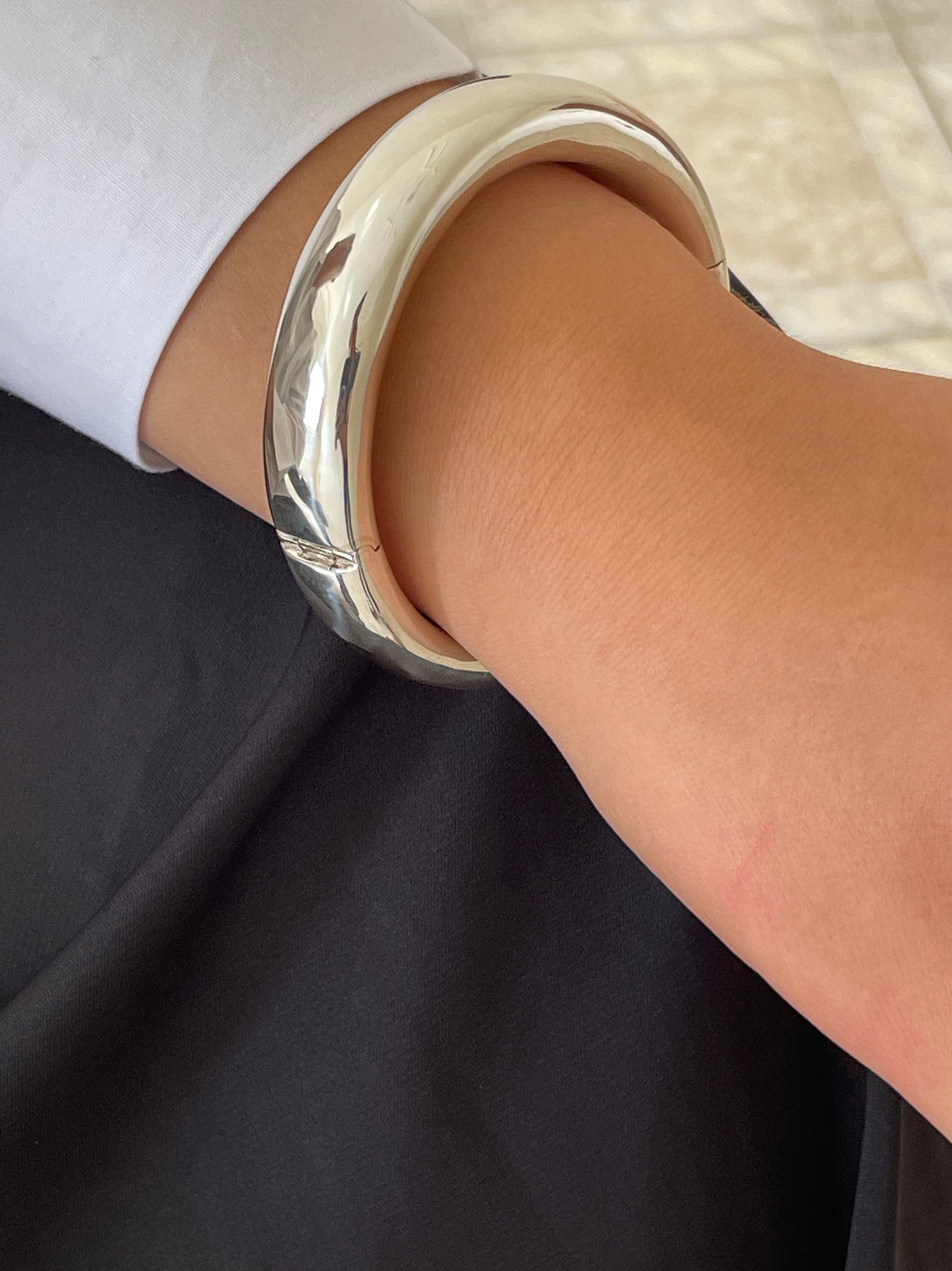 Heavy Sterling Silver Wide Hinged Chunky Bangle Bracelet