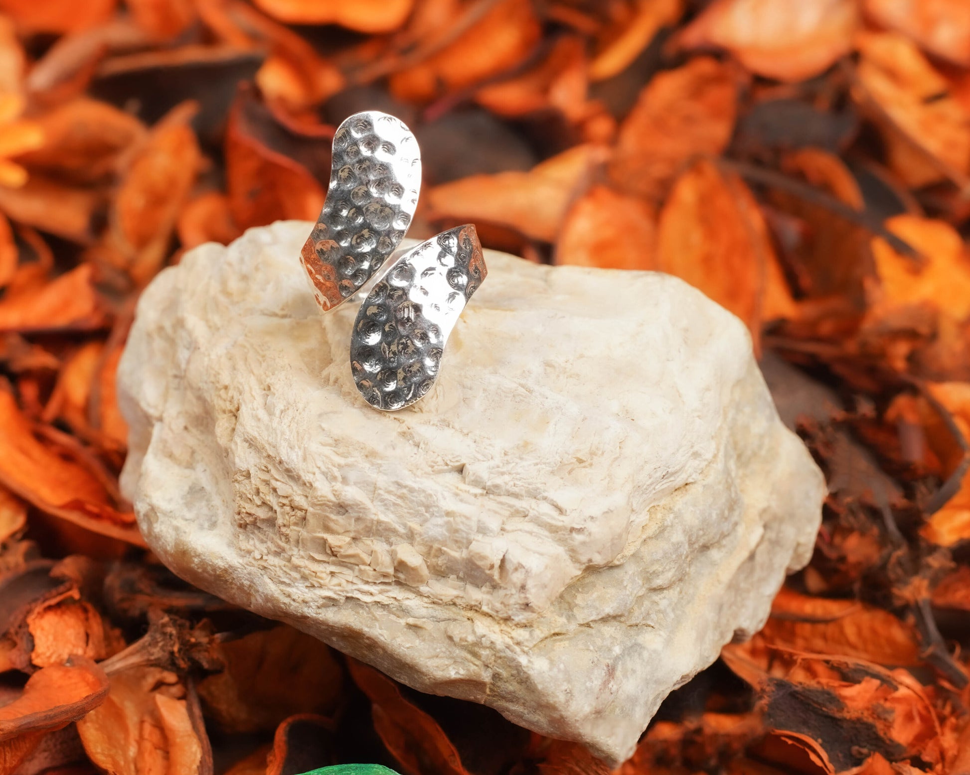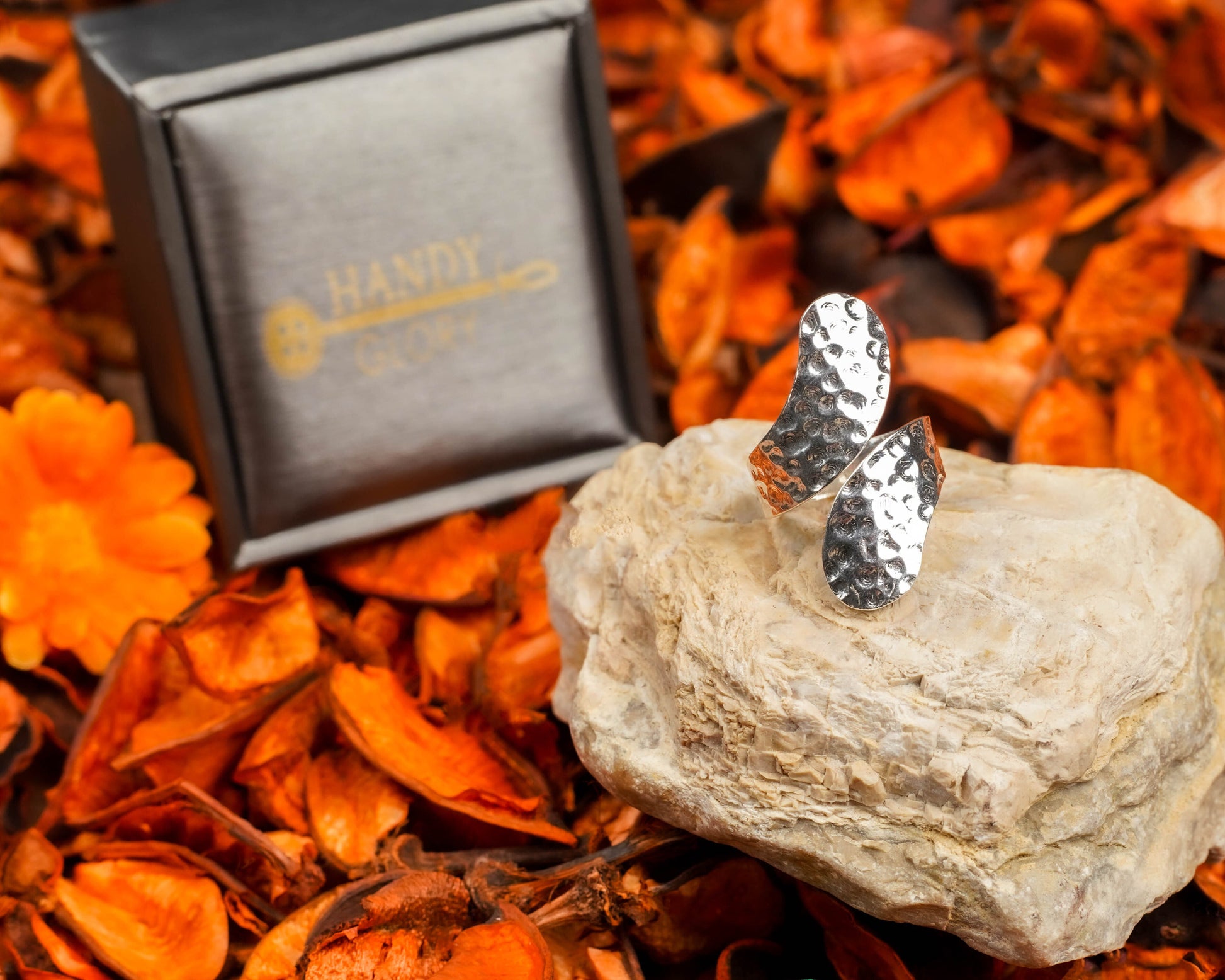 Hammered Sterling Silver Handmade Wide Band Ring for Women
