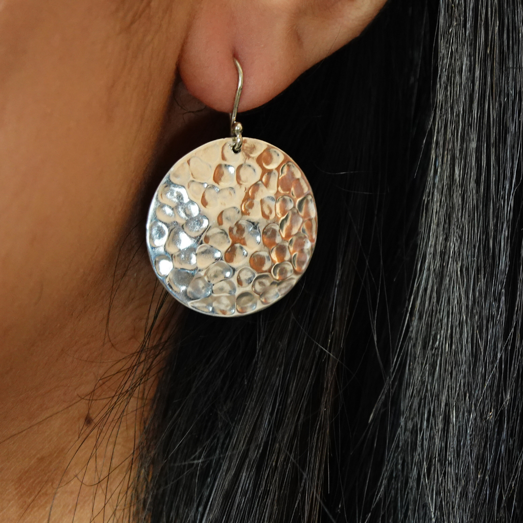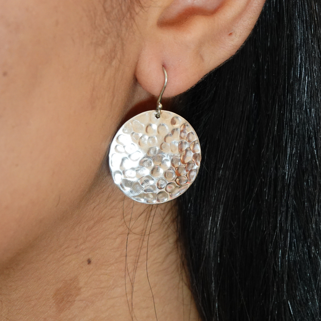 Handcrafted hammered earrings created from genuine sterling silver 925.