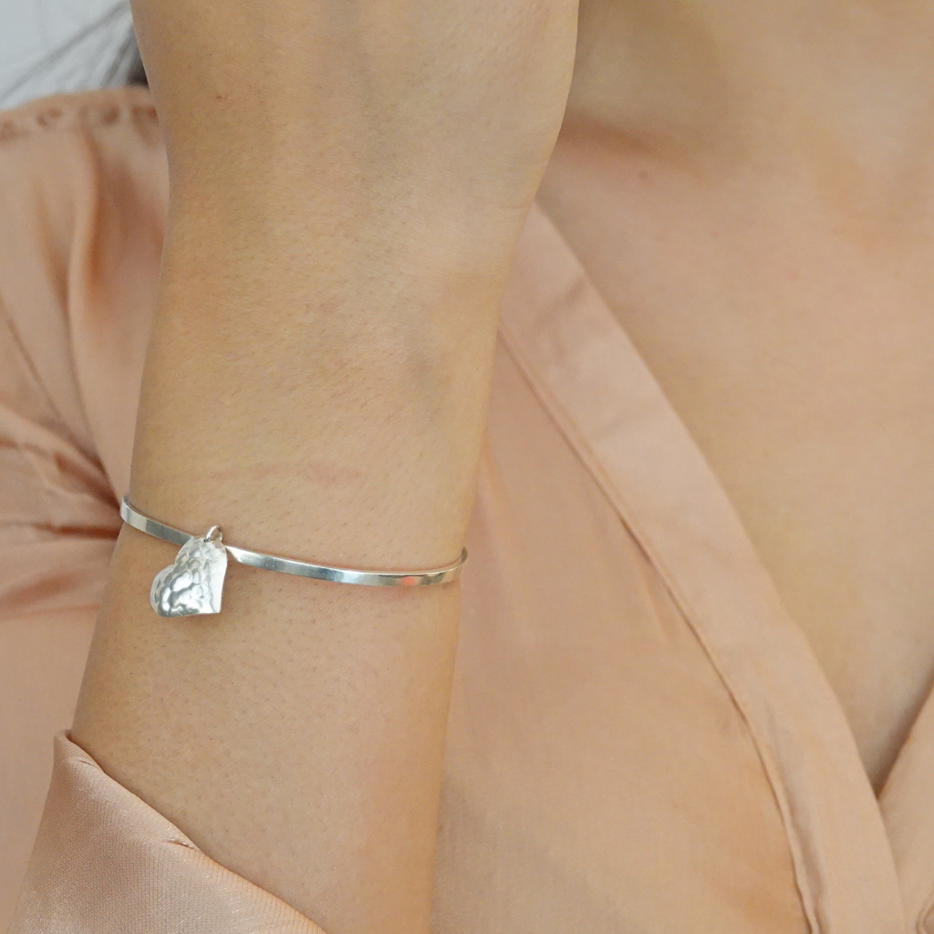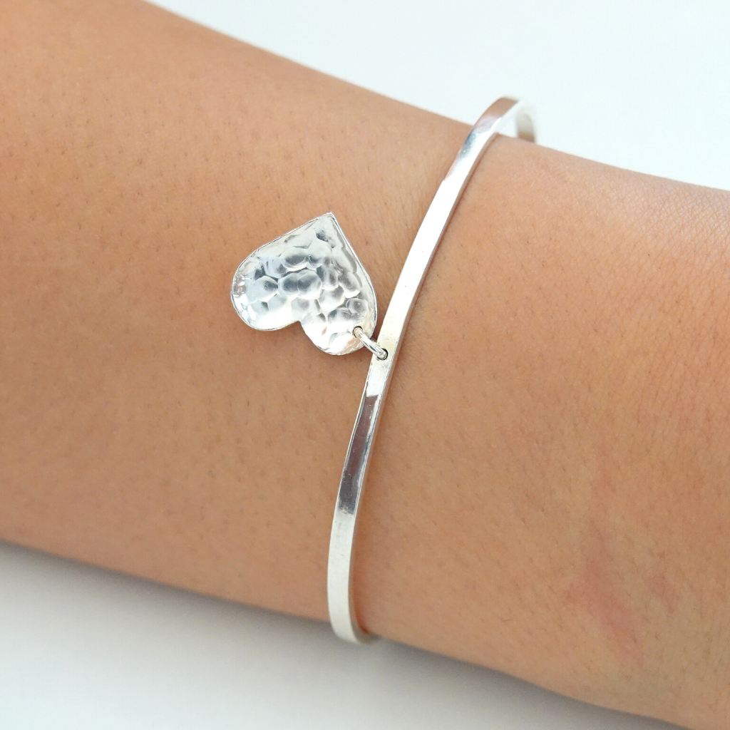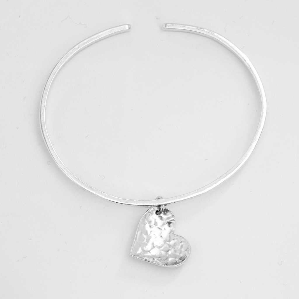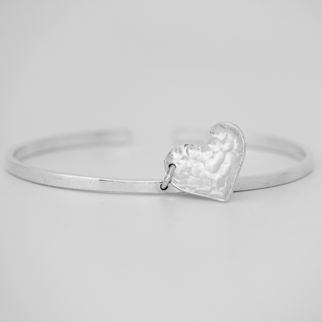 The tiny heart in our chic bangle has a hammered finish on both sides to enlighten and add a unique touch to it.