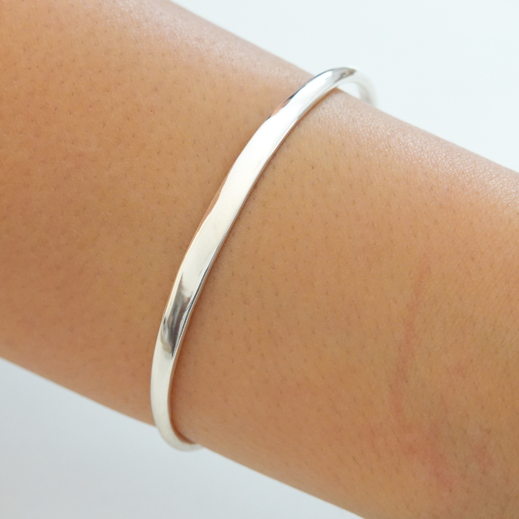 Sterling Silver Chunky Round Closed Bangle - Wide Stacking D-Shaped Design